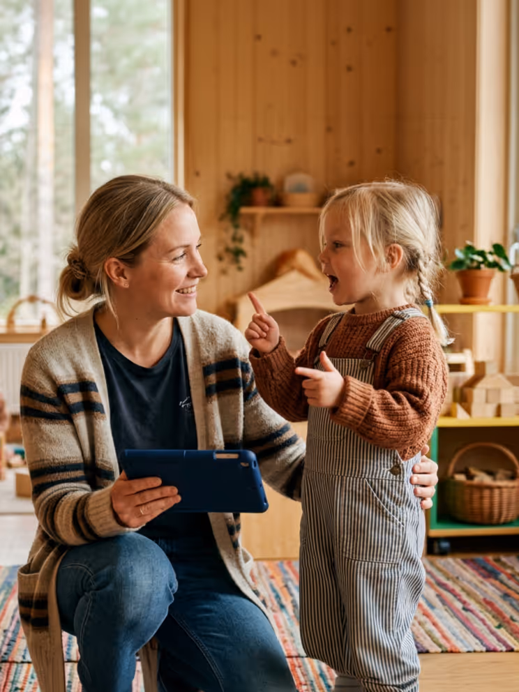 Med modulen Fri berättelse följer Speakin med i bakgrunden under vardagsaktiviteter och analyserar barnens språkutveckling – utan att störa lärandet.